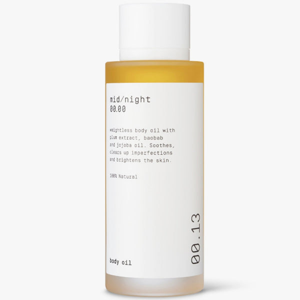 Ofte har i for mange produkter til personlige pleje, nogle af dem meget unødvendige. Mid/night 00.00 ønsker at optimere skønheden ved at tilbyde færre produkter, der er mere alsidige og tværfunktionelle, sammensat med sunde ingredienser, der fremhæver den oprigtige og ægte skønhed.