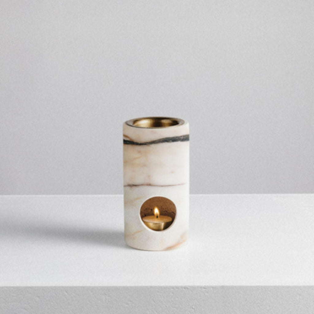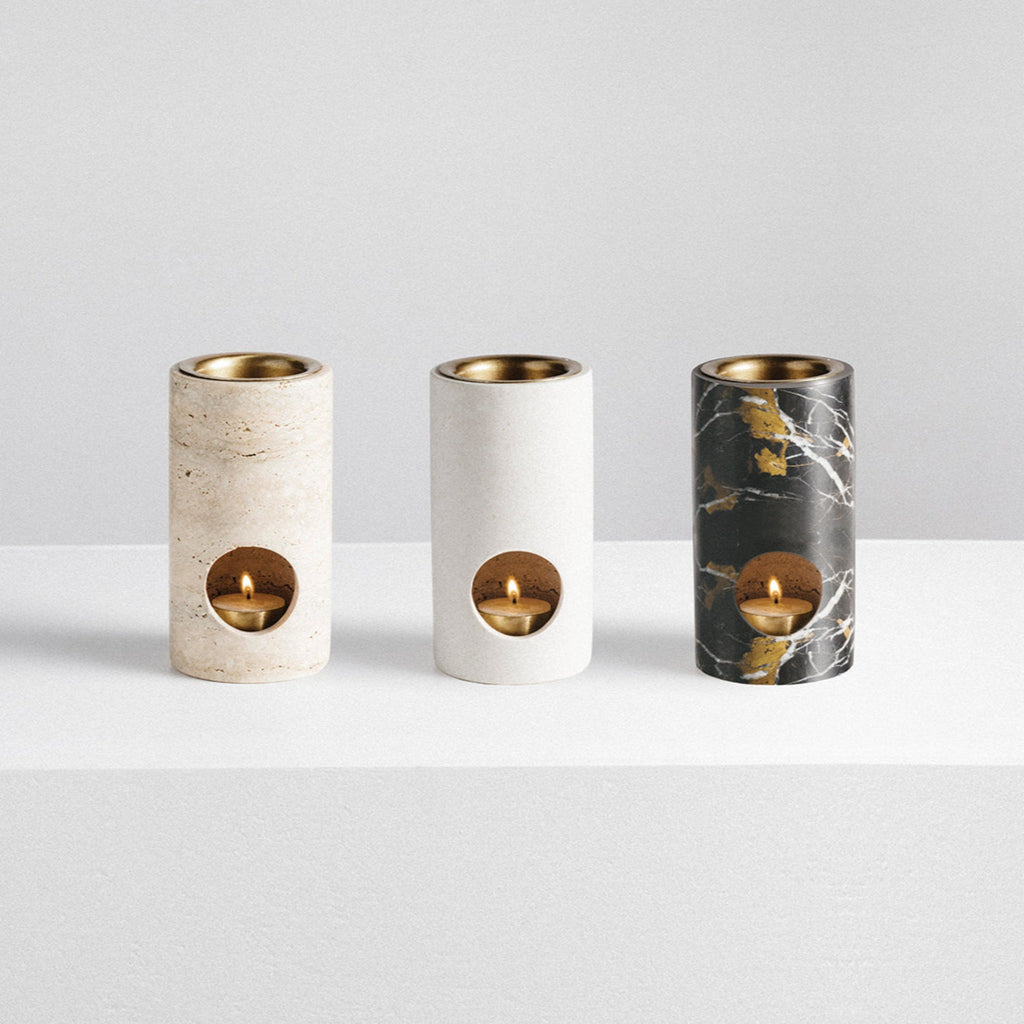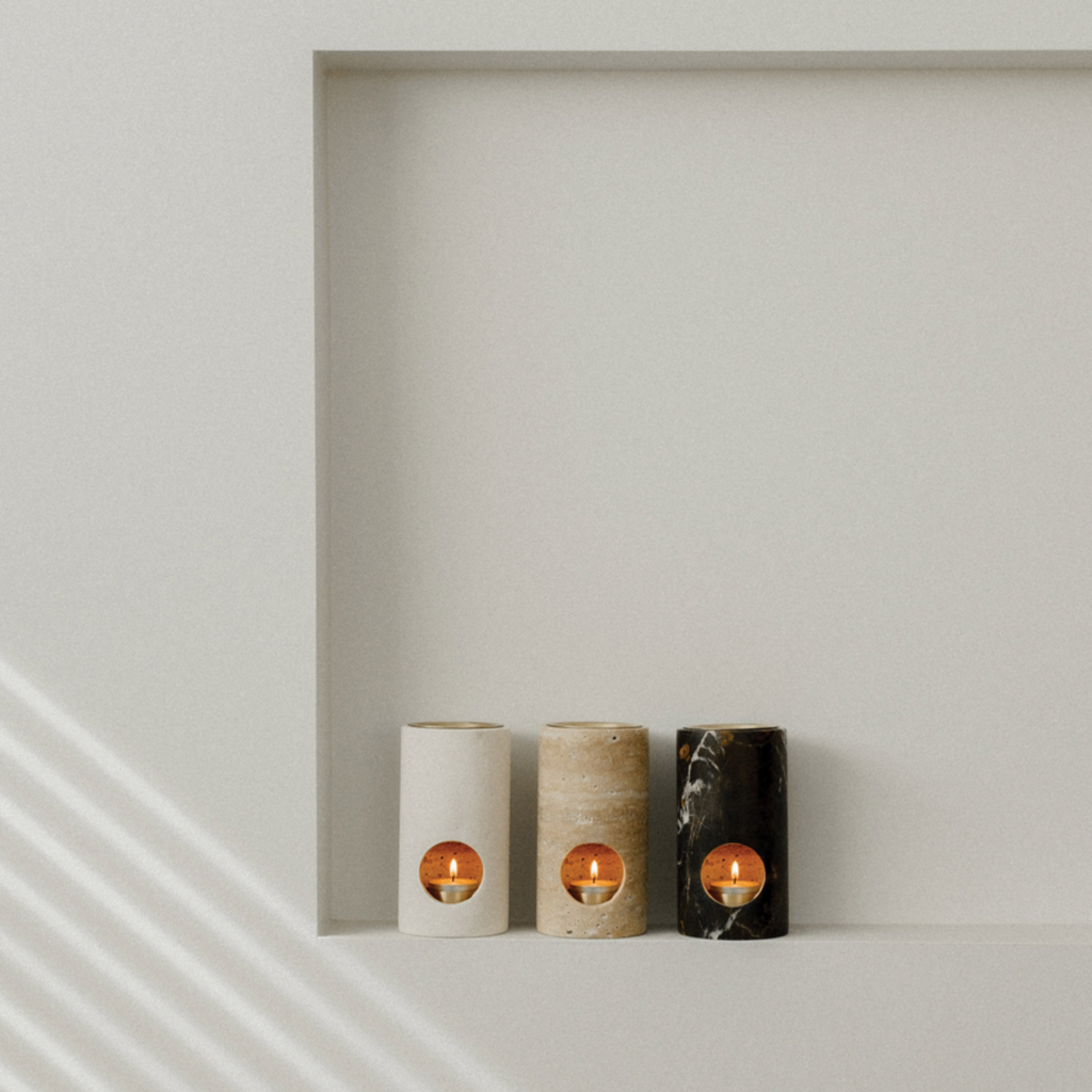Oliebrænderen er udskåret i et solidt stykke sten og inkluderer en æterisk olie og et australsk bivokslys.