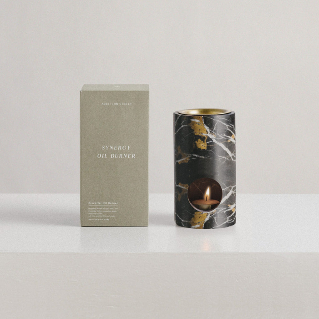 Synergy Oil Burner har et minimalistisk og æstetisk design. Den leveres med en skål i 100% messing hvori de æteriske olier tilføres samt en 100% messingholder til fyrfadslys, så produktet fremstår eksklusivt. Idet olien tilføres direkte over fyrfadslyset kommer der med et samme en dejlig duft i rummet.